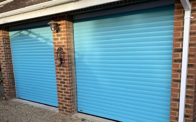 At this property, we supplied and fitted two SWS Seceuroglide Original insulated roller garage doors in a unique Duck Egg Blue finish. Both doors measured 2290mm x 2150mm and were installed behind the openings, offering a clean internal fit that maximised driveway space and enhanced security.